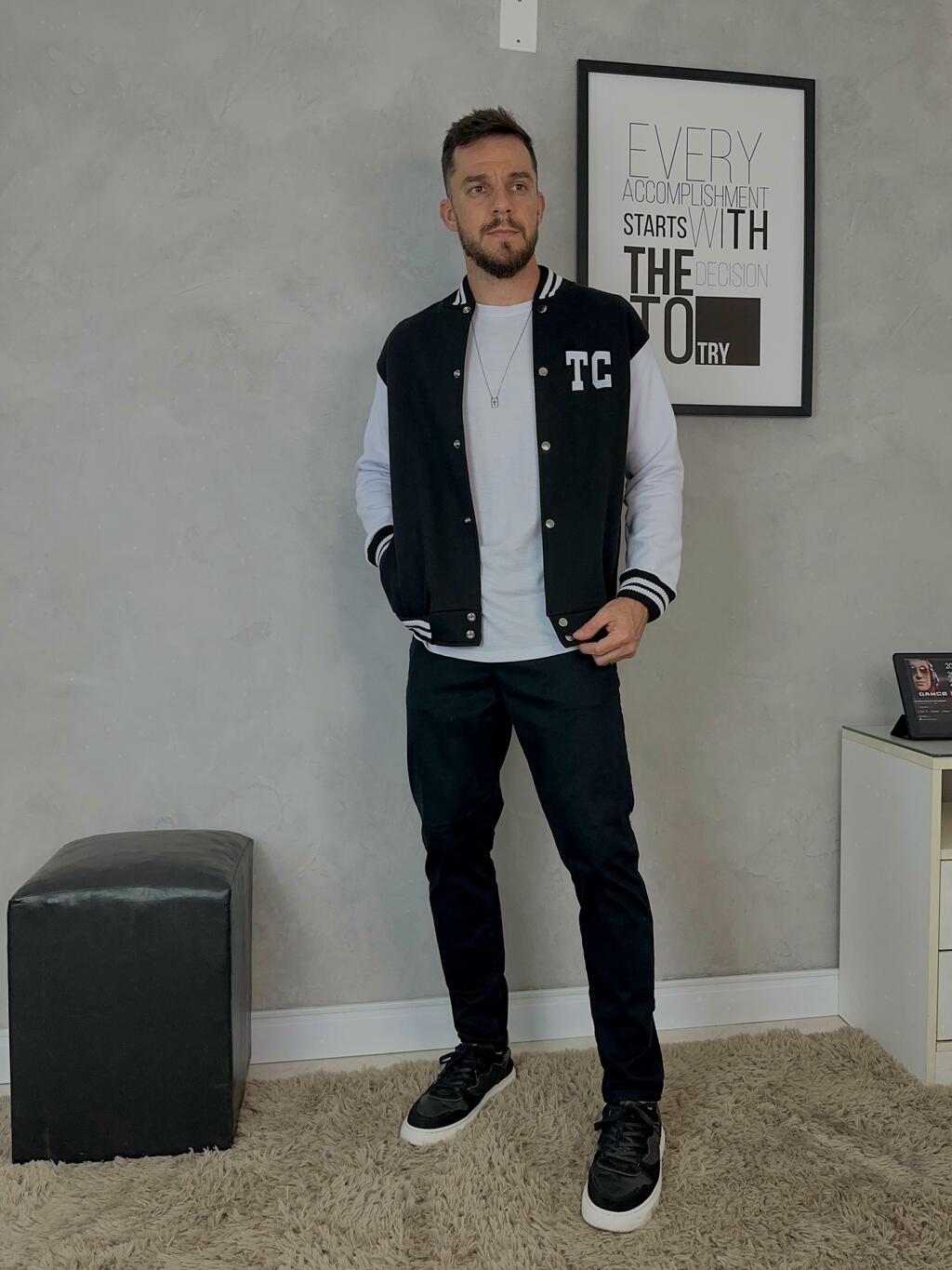 Modelo está vestindo tamanho (P) tendo 1,74 m de altura e 74 Kg